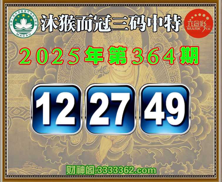 364期:《沐猴而冠》  ♣️三码中特 ♣️【12.27.49】开:12