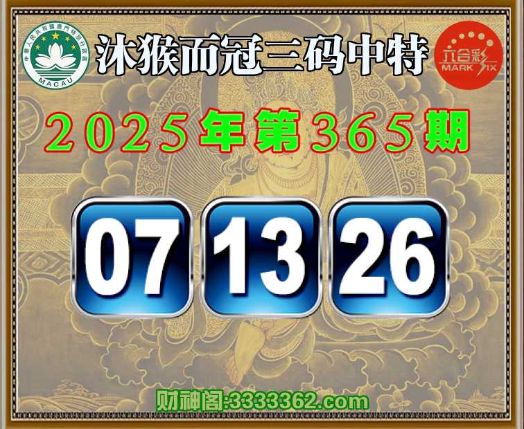 365期:《沐猴而冠》  ♣️三码中特 ♣️【07.13.26】开:26