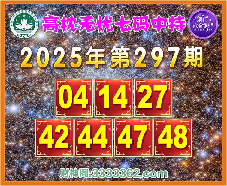 297期:【高枕无忧】 🍖七码中特🍖【04.14.27.42.44.47.48】开:44
