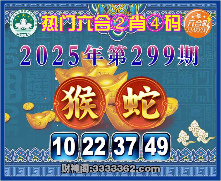 299期: 👘『热门六合』 👘②肖④码👘【猴】【10.22.37.49】开:蛇49