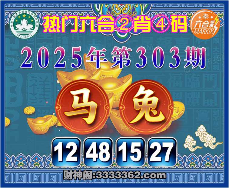303期: 👘『热门六合』 👘②肖④码👘【马】【12.48.15.27】开:兔15