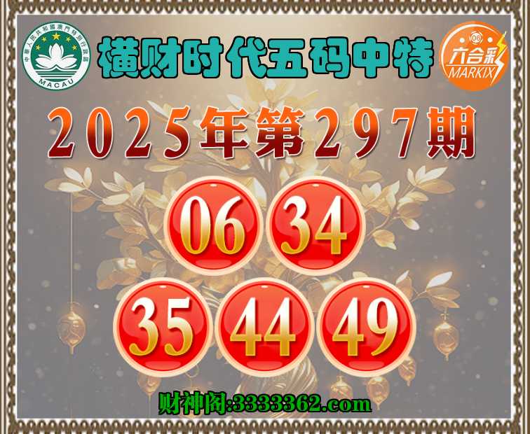 297期:【横财时代】 ✂️五码中特✂️【06.34.35.44.49】开:44