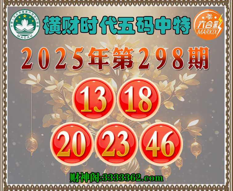 298期:【横财时代】 ✂️五码中特✂️【13.18.20.23.46】开:23