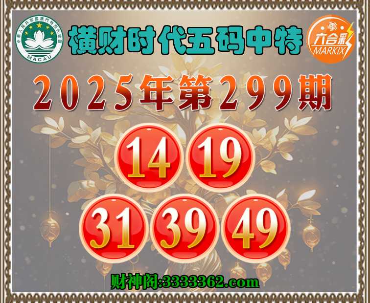 299期:【横财时代】 ✂️五码中特✂️【14.19.31.39.49】开:49