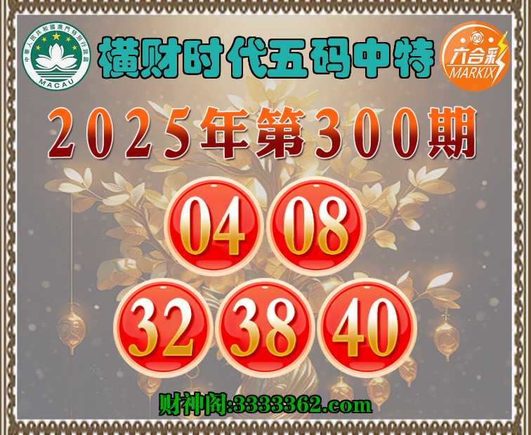 300期:【横财时代】 ✂️五码中特✂️【04.08.32.38.40】开:40