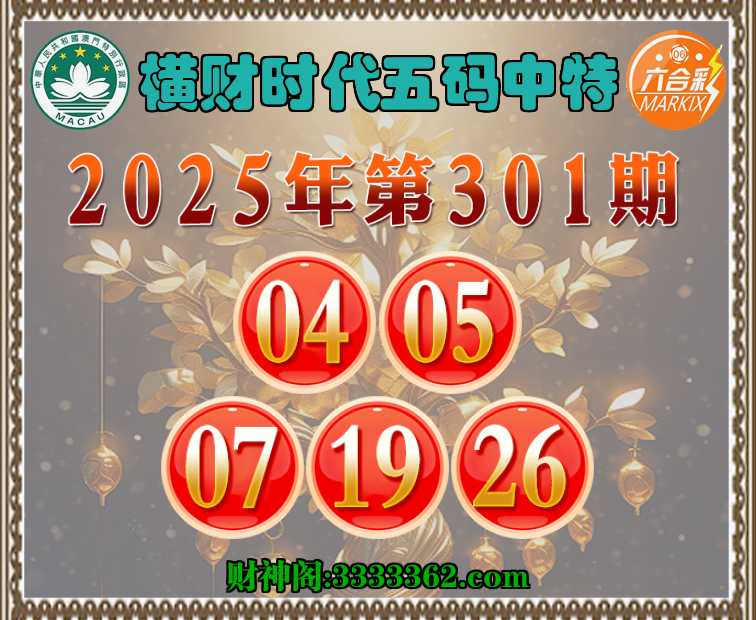 301期:【横财时代】 ✂️五码中特✂️【04.05.07.19.26】开:05
