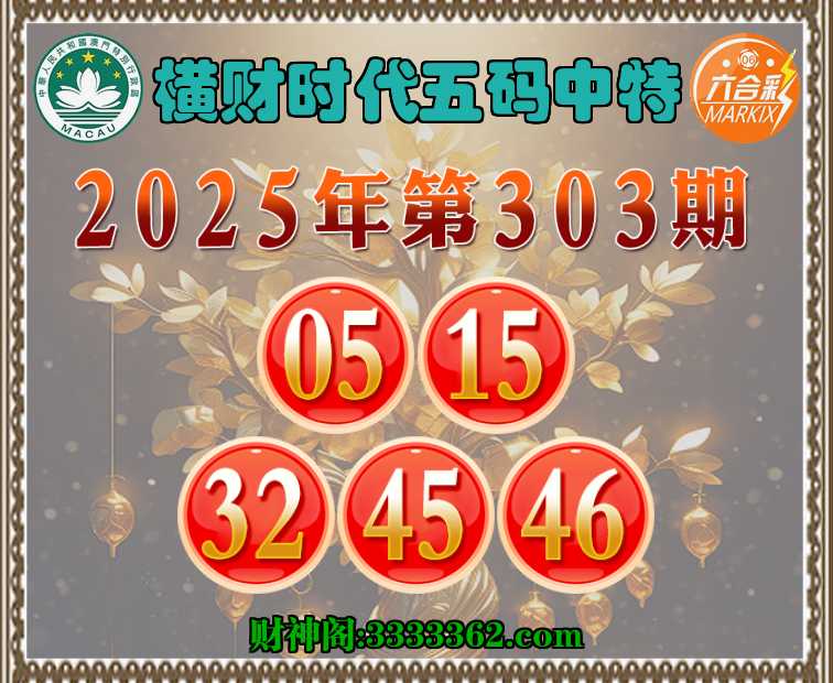 303期:【横财时代】 ✂️五码中特✂️【05.15.32.45.46】开:15