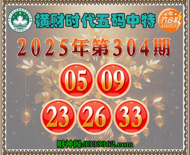 304期:【横财时代】 ✂️五码中特✂️【05.09.23.26.33】开:00准
