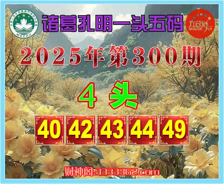 300期:『诸葛孔明』 ♣️一头五码♣️【4头主:40.42.43.44.49】开:40