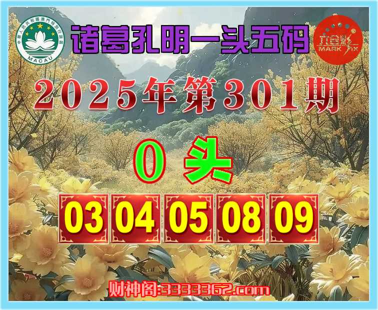301期:『诸葛孔明』 ♣️一头五码♣️【0头主:03.04.05.08.09】开:05