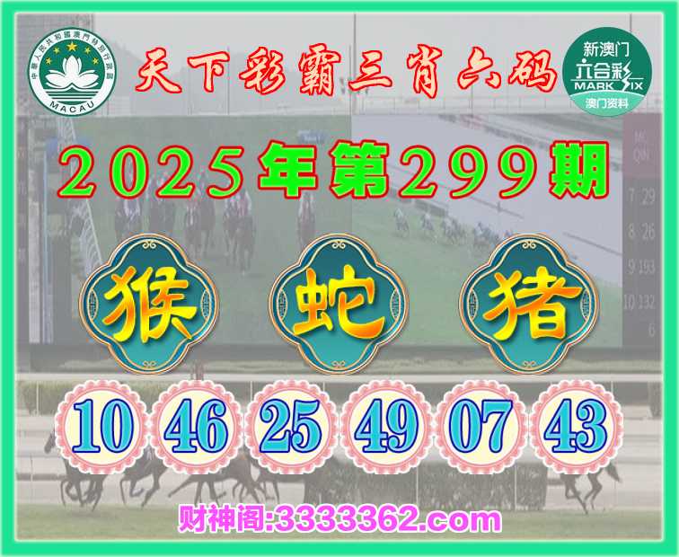 299期:【天下彩霸】 ♦️三肖六码♦️【猴猪】开:蛇49