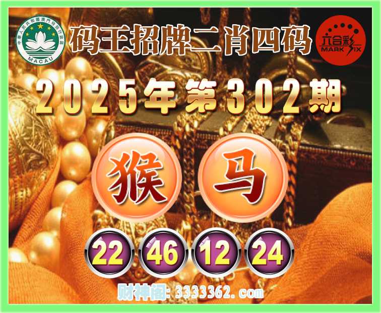 302期:【码王招牌】 😍二肖四码😍【马】【22.46.12.24】开:猴22