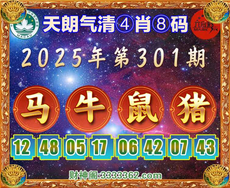 301期:【天朗气清】 🚵‍♀️④肖⑧码🚵‍♀️【马鼠猪】开:牛05