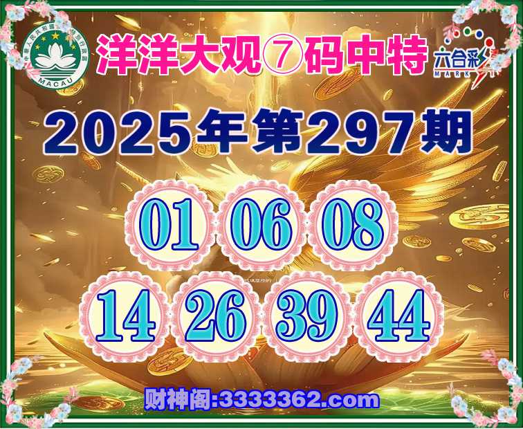 297期:『洋洋大观』 🧸⑦码中特🧸【01.06.08.14.26.39.44】开:44