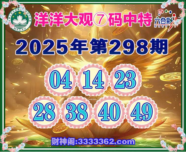 298期:『洋洋大观』 🧸⑦码中特🧸【04.14.23.28.38.40.49】开:23