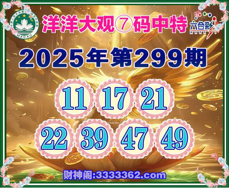 299期:『洋洋大观』 🧸⑦码中特🧸【11.17.21.22.39.47.49】开:49