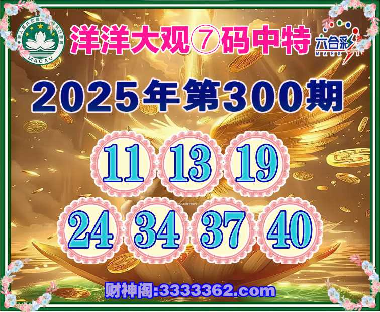 300期:『洋洋大观』 🧸⑦码中特🧸【11.13.19.24.34.37.40】开:40