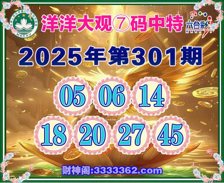 301期:『洋洋大观』 🧸⑦码中特🧸【05.06.14.18.20.27.45】开:05