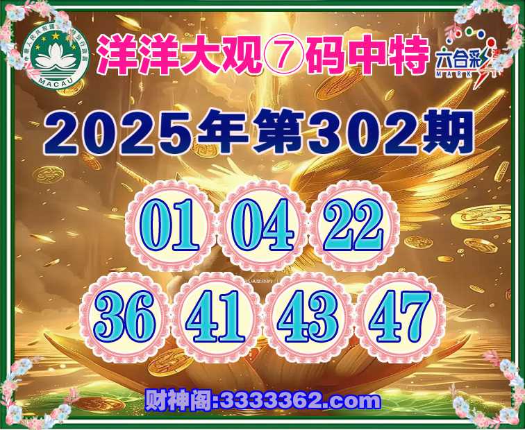 302期:『洋洋大观』 🧸⑦码中特🧸【01.04.22.36.41.43.47】开:22