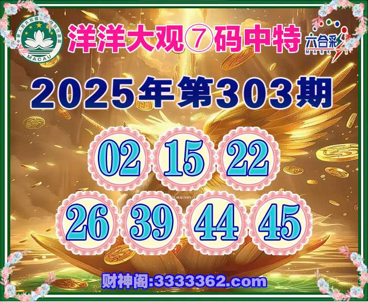 303期:『洋洋大观』 🧸⑦码中特🧸【02.15.22.26.39.44.45】开:15