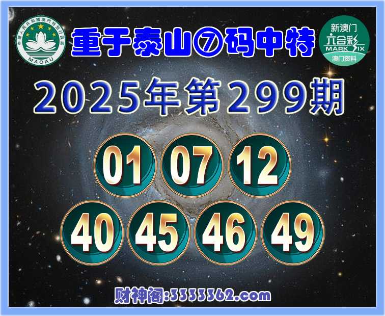 299期:【重于泰山】 🪢⑦码中特🪢【01.07.12.40.45.46.49】开:49