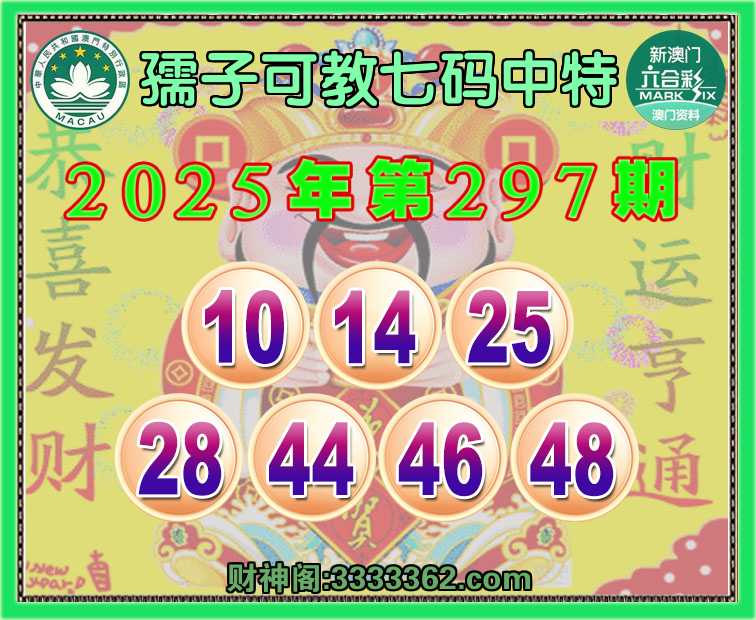 297期:【孺子可教】 🥬七码中特🥬【10.14.25.28.44.46.48】开:44