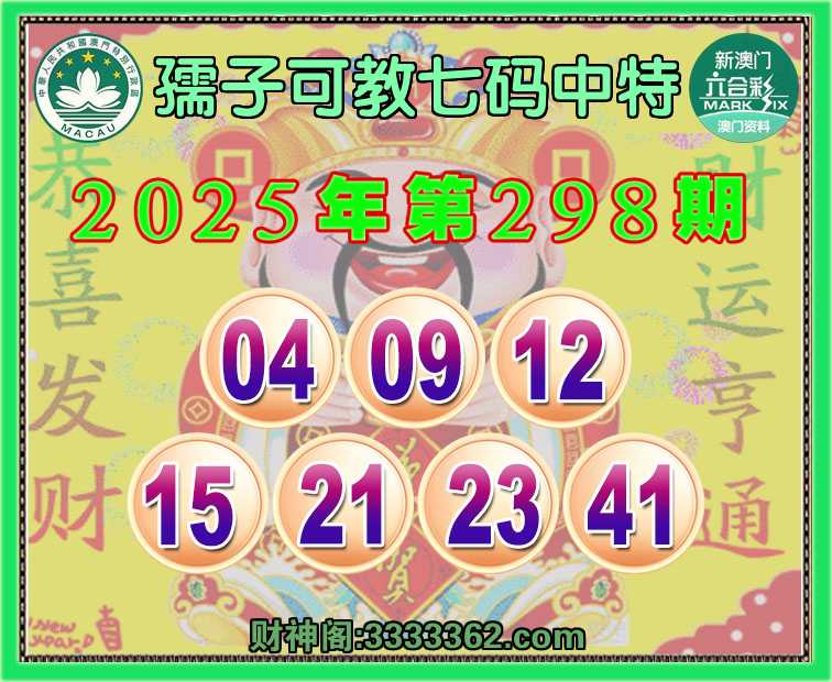 298期:【孺子可教】 🥬七码中特🥬【04.09.12.15.21.23.41】开:23