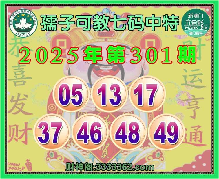 301期:【孺子可教】 🥬七码中特🥬【05.13.17.37.46.48.49】开:05