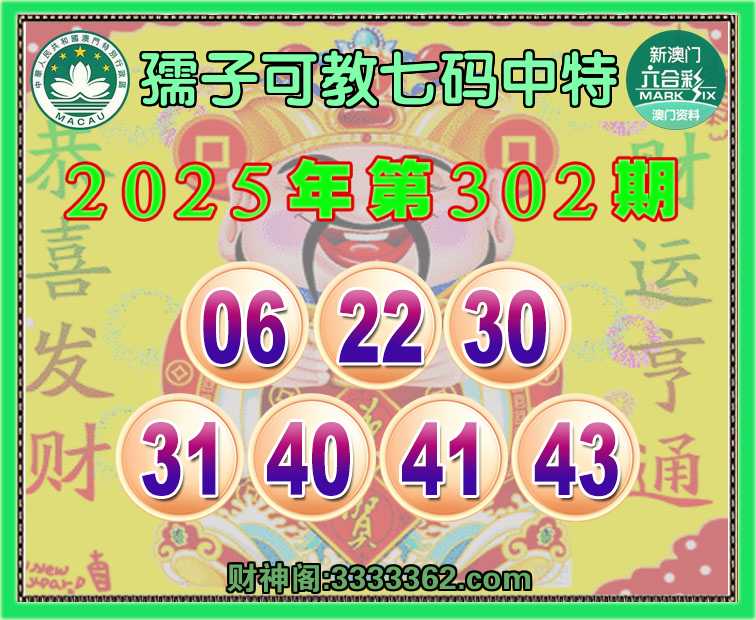 302期:【孺子可教】 🥬七码中特🥬【06.22.30.31.40.41.43】开:22