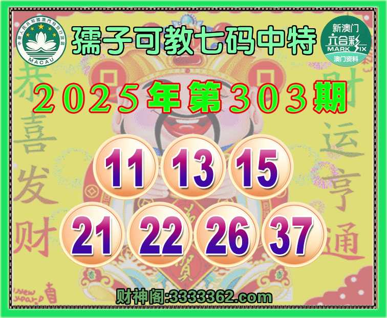 303期:【孺子可教】 🥬七码中特🥬【11.13.15.21.22.26.37】开:15