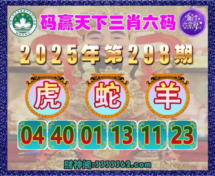 298期:〖码赢天下〗 🌷三肖六码🌷【虎蛇】开:羊23