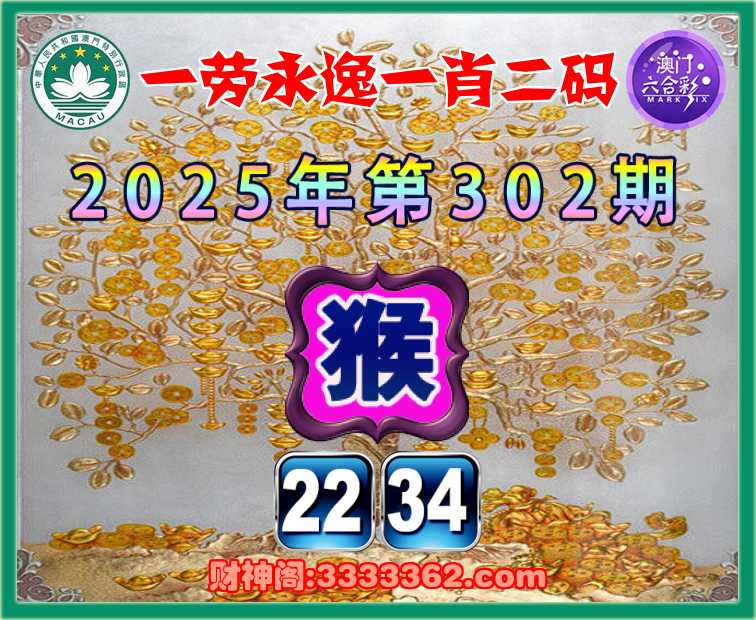302期:『一劳永逸』 🎖️一肖二码🎖️【】【22.34】开:猴22