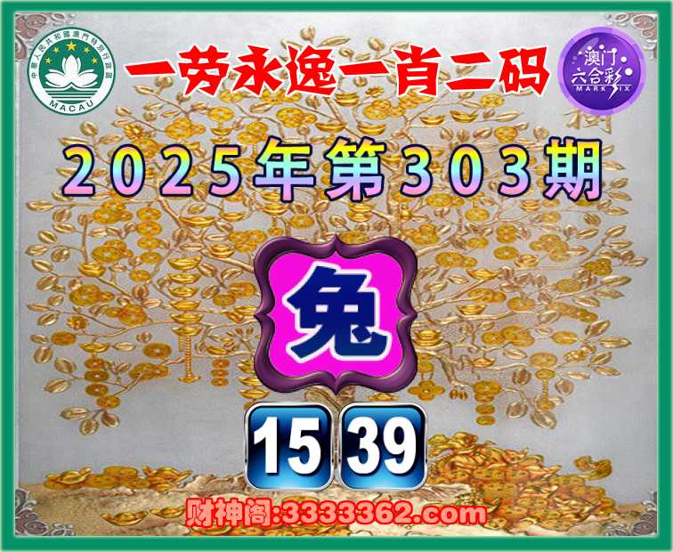 303期:『一劳永逸』 🎖️一肖二码🎖️【】【15.39】开:兔15
