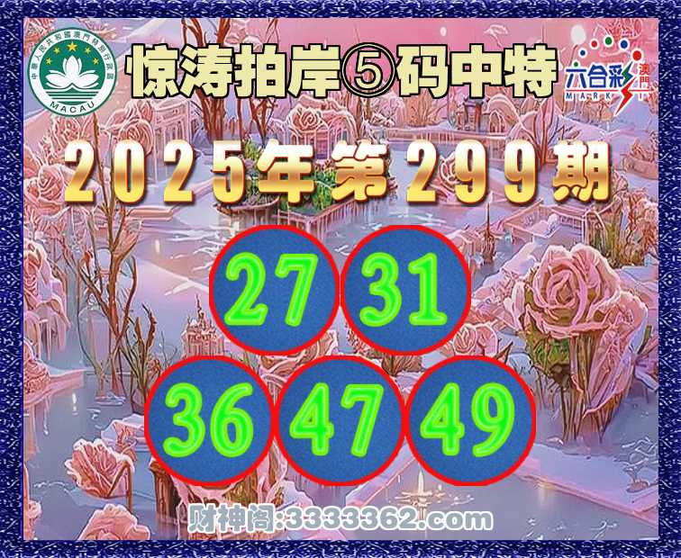 299期:【惊涛拍岸】 🌳⑤码中特🌳【27.31.36.47.49】开:49
