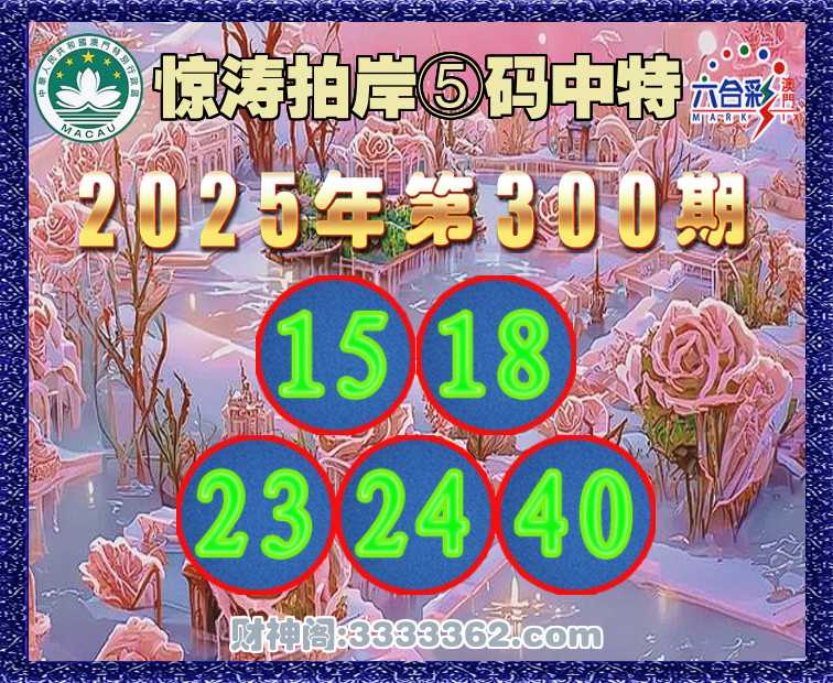 300期:【惊涛拍岸】 🌳⑤码中特🌳【15.18.23.24.40】开:40