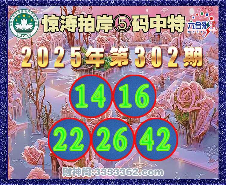 302期:【惊涛拍岸】 🌳⑤码中特🌳【14.16.22.26.42】开:22