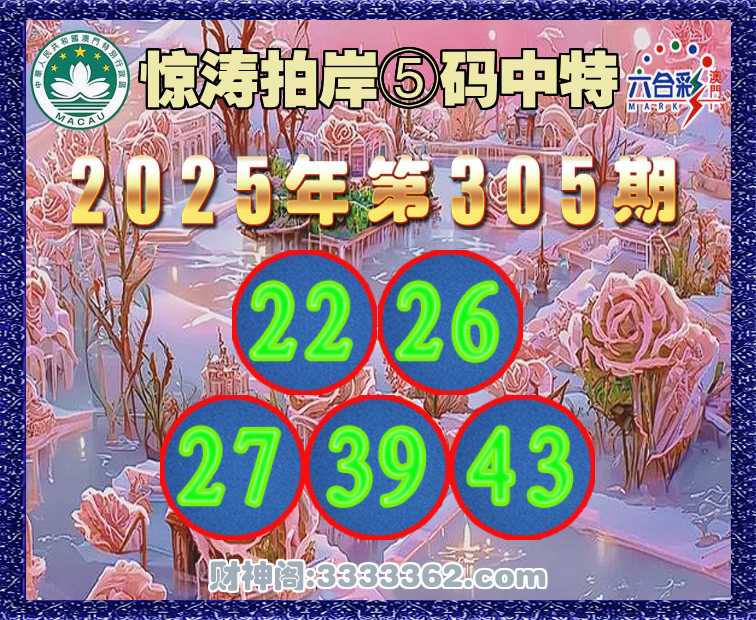 305期:【惊涛拍岸】 🌳⑤码中特🌳【22.26.27.39.43】开:00准