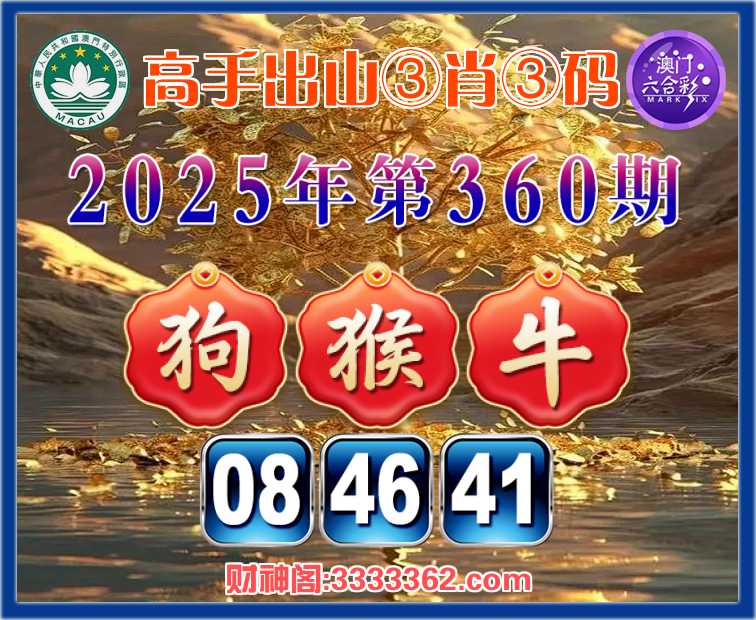 360期:【高手出山】 😍③肖③码😍【狗猴】【08.46.41】开:牛41