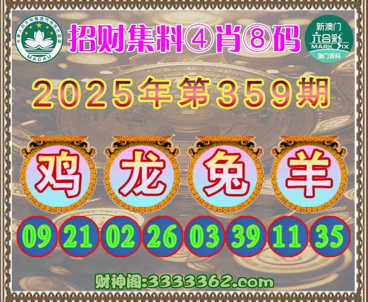 359期:《招财集料》 🌳④肖⑧码🌳【鸡龙兔】开:羊11