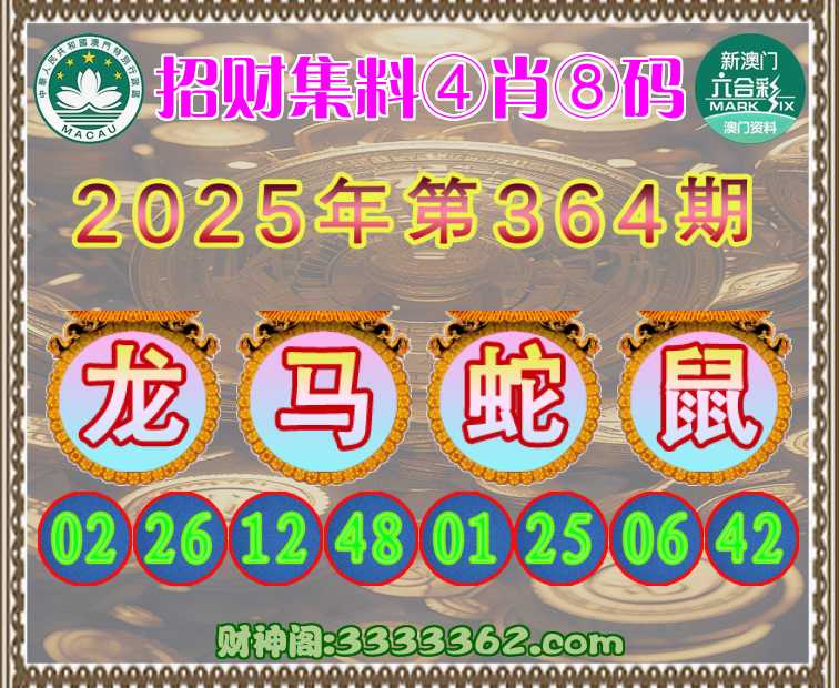 364期:《招财集料》 🌳④肖⑧码🌳【龙蛇鼠】开:马12