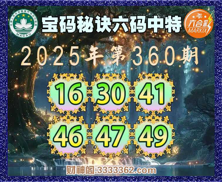 360期:〖宝码秘诀〗 😍六码中特😍【16.30.41.46.47.49】开:41