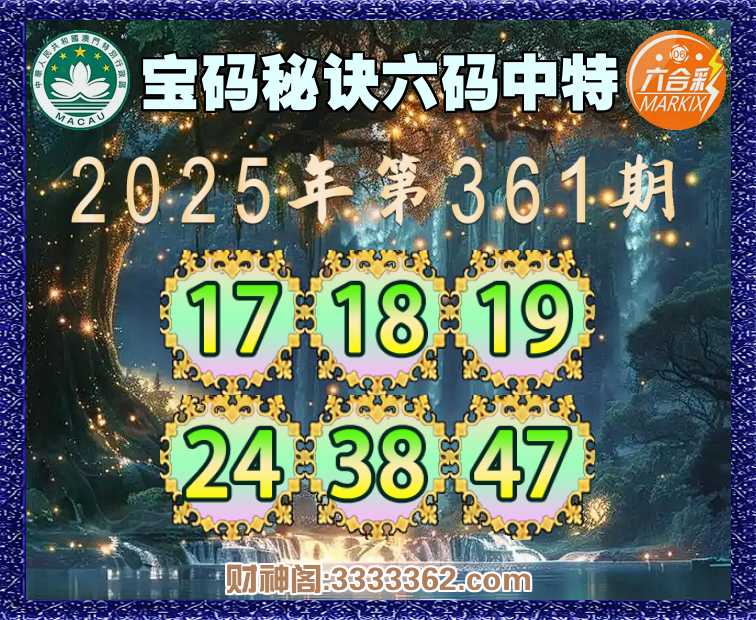 361期:〖宝码秘诀〗 😍六码中特😍【17.18.19.24.38.47】开:24