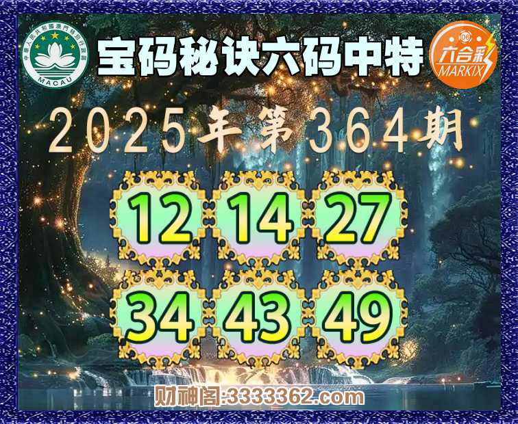364期:〖宝码秘诀〗 😍六码中特😍【12.14.27.34.43.49】开:12