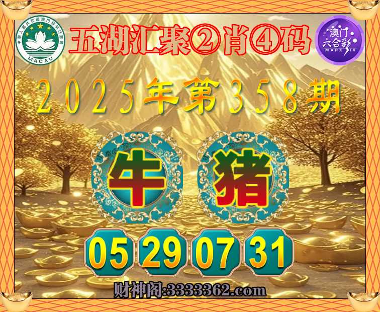 358期:『五湖汇聚』 🥬②肖④码🥬【牛】【05.29.07.31】开:猪07