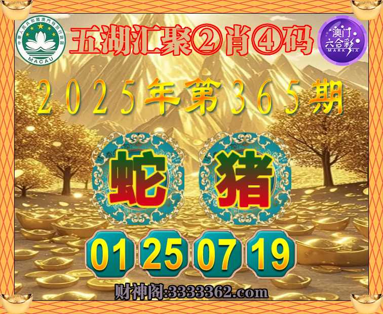365期:『五湖汇聚』 🥬②肖④码🥬【蛇猪】【01.25.07.19】开:00准