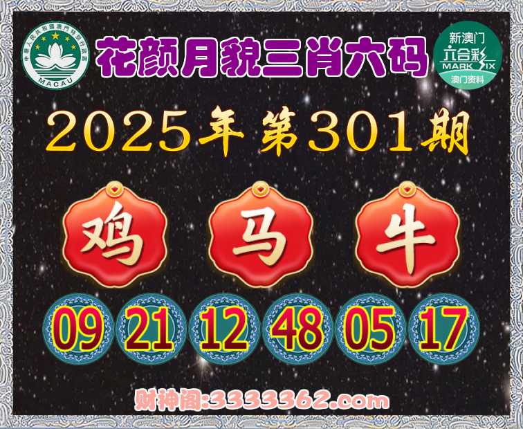301期: 🍒『花颜月貌』 🍒三肖六码🍒【鸡马】开:牛05