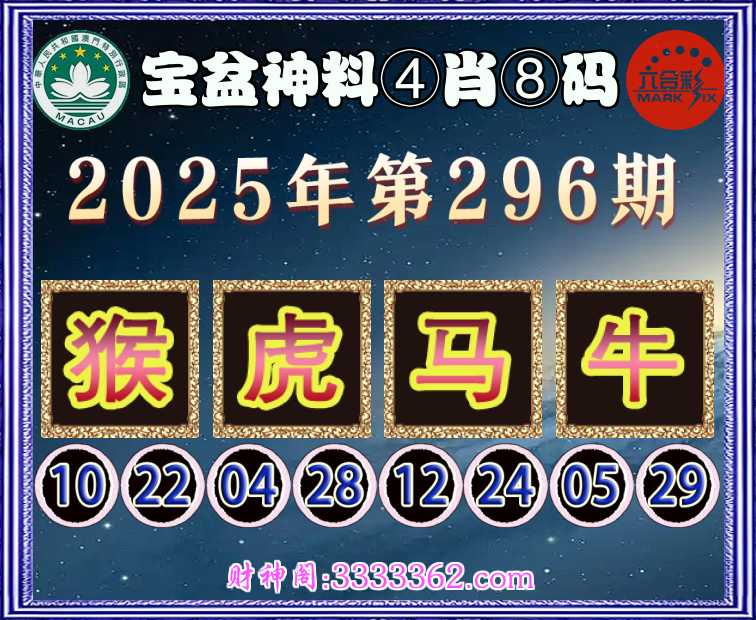 296期:【宝盆神料】 👑④肖⑧码👑【虎马牛】开:猴22
