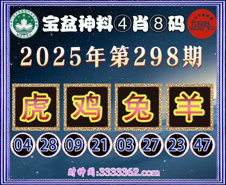 298期:【宝盆神料】 👑④肖⑧码👑【虎鸡兔】开:羊23