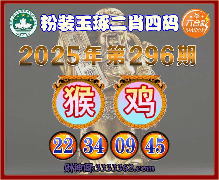 296期: ♠️『粉装玉琢』 ♠️二肖四码♠️【鸡】【22.34.09.45】开:猴22