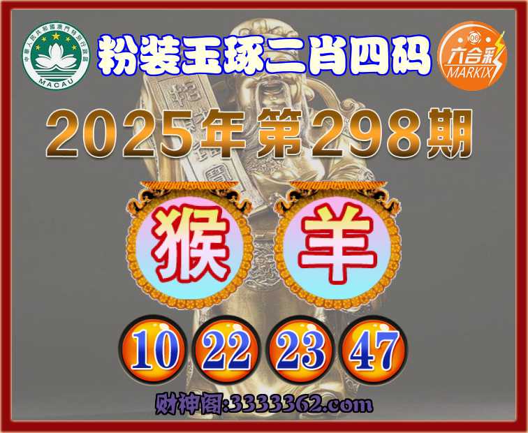 298期: ♠️『粉装玉琢』 ♠️二肖四码♠️【猴】【10.22.23.47】开:羊23